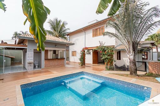 LOCALIZAÇÃO Em ótima localização, à poucos minutos da entrada da cidade e a poucos minutos do shoping Pátio Pinda. o Plaza D'oro Shopping. Com fácil acesso às principais vias da cidade. Rodeado por uma ampla rede de comércios e variedades. AMBIENTES: Sala de estar e jantar, cozinha, 3 quartos sendo 1 suíte, 1 escritório, 1 lavabo, 2 banheiros sociais, piscina, quintal, área de serviço e 4 vagas de garagem. DIFERENCIAIS: Casa extremamente elegante, com acabamentos refinados, belíssimas luminárias, ambientes amplos e integrados, ar condicionado em todos os quartos, amplo quintal, com piscina com cascata, bancadas em granito e revestimento até o teto nas áreas molhadas, móveis planejados em todos os cômodos. Agende sua visita!