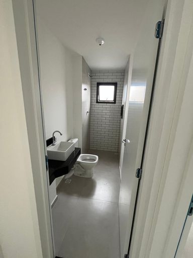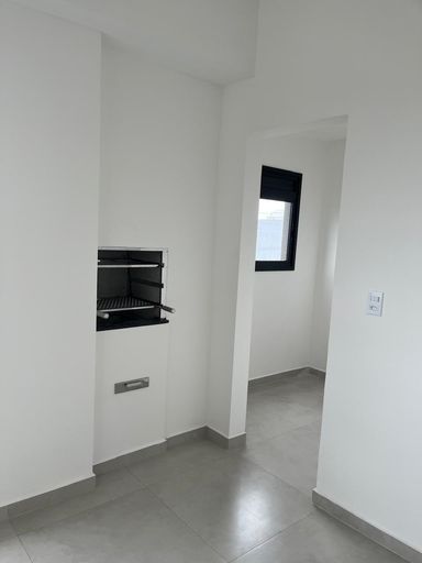 02 quartos, sendo 01 suíte, 01 banheiro social, sala, cozinha, área de serviço e 01 vaga de garagem coberta.