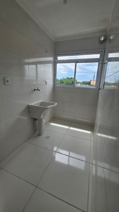Sala de estar, cozinha americana, 2 quartos, sendo 1 suíte, banheiro social, área de serviço e 1 vaga de garagem.