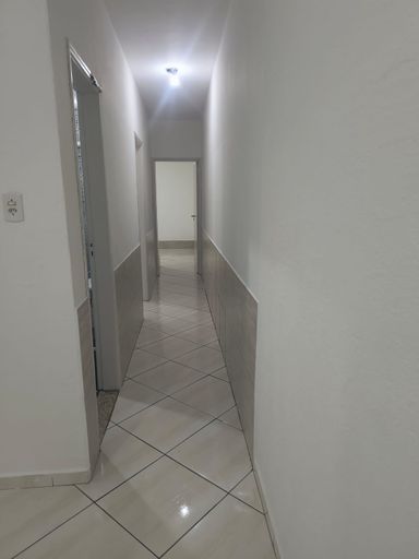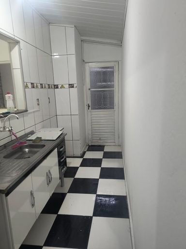 Sala de estar, cozinha, 2 quartos, banheiro social, área de serviço e 2 vagas de garagem cobertas.