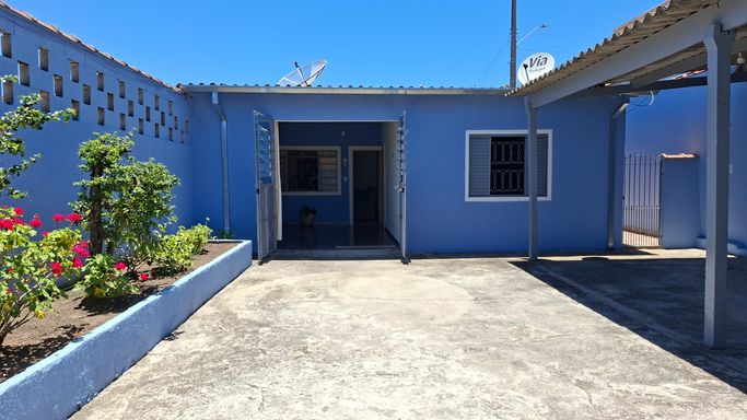 02 quartos, sendo 01 suíte, 01 banheiro social, sala espaçosa, cozinha com móveis planejados, área de serviço, 02 vagas de garagem cobertas, portão eletrônico.