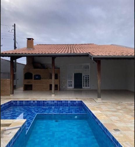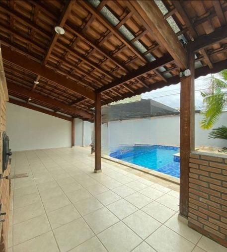 Casa com amplo jardim, ar condicionado na sala, piscina, área gourmet com churrasqueira, forno a lenha, perfeito para quem busca lazer, tranquilidade e facilidade.