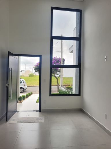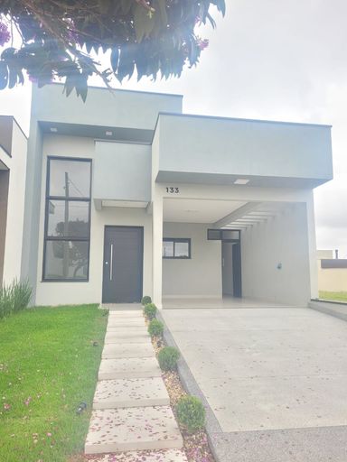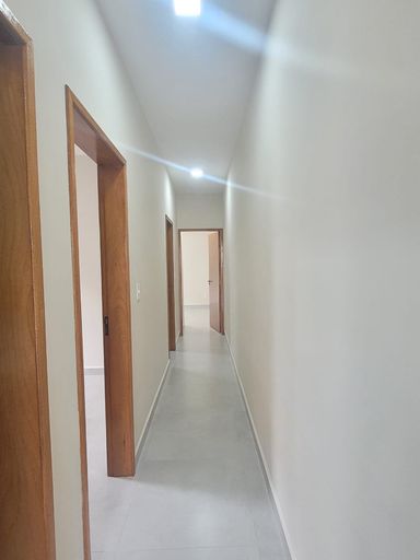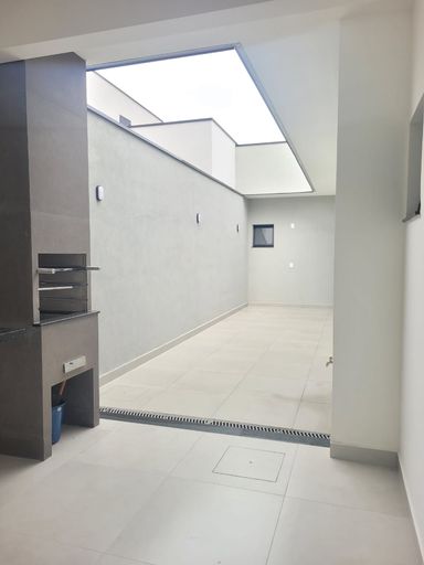 Sala de estar, sala de jantar, 3 quartos sendo 1 suíte, 1 banheiros social, cozinha, quintal, área de serviço e garagem.