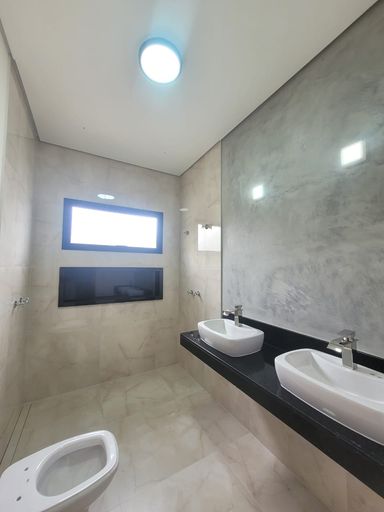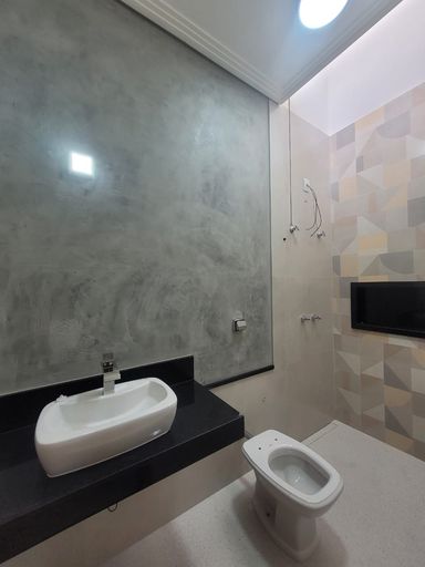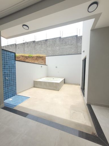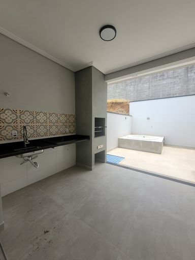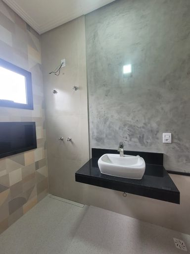 Casa Nova com pé direito duplo na sala, com acabamentos extremamente sofisticados, piso em porcelanato, luminárias, projeto luminotécnico, lavabo, bancadas em granito, área gourmet com chuveirão e spa!!