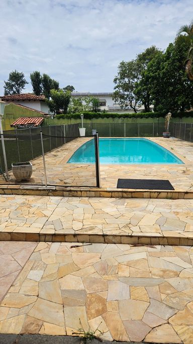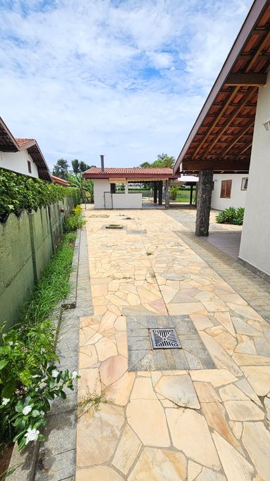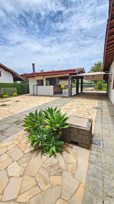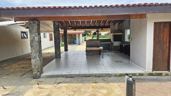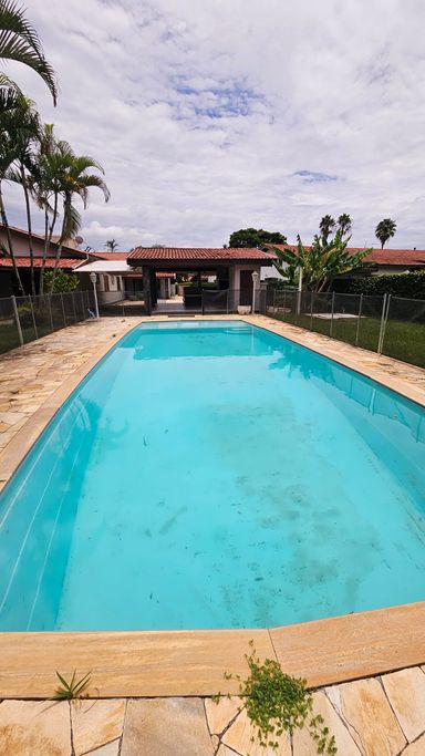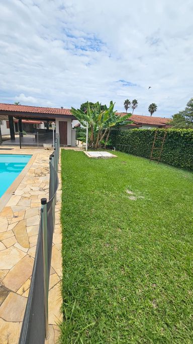 Com 1.2500 m² de área de terreno e 400 m² de área construída, o imóvel térreo dispõe de ampla sala de estar, cozinha, cinco dormitórios, sendo quatro suítes . Além disso, um amplo quintal com piscina, churrasqueira e jardim.