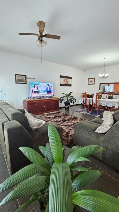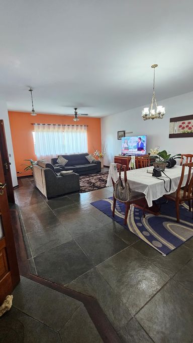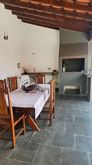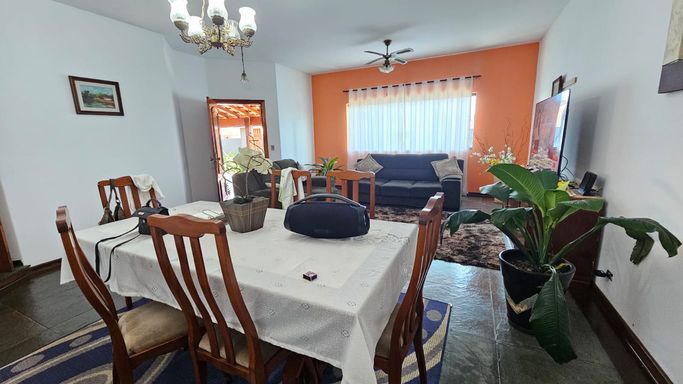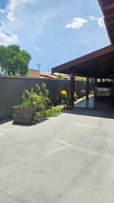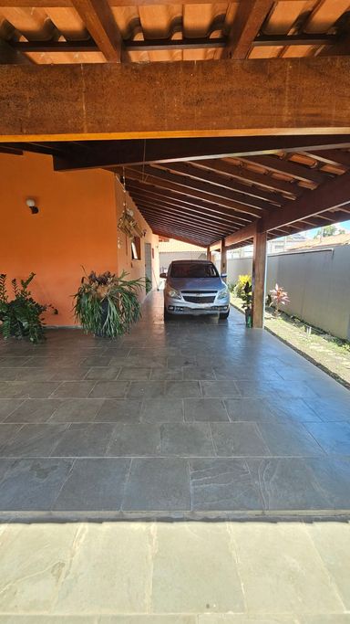 A casa conta com 3 quartos, sendo 1 suíte, sala ampla, cozinha, banheiro, edícula e 5 vagas de garagem.