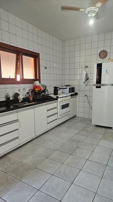 Cozinha com móveis planejados, ampla área gourmet com churrasqueira, edícula nos fundos com 2 quartos e um banheiro.