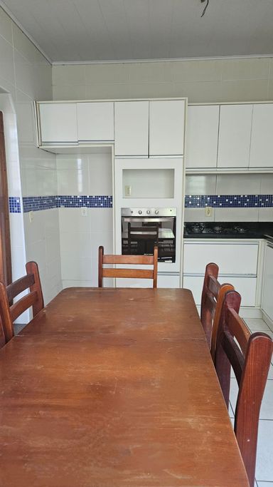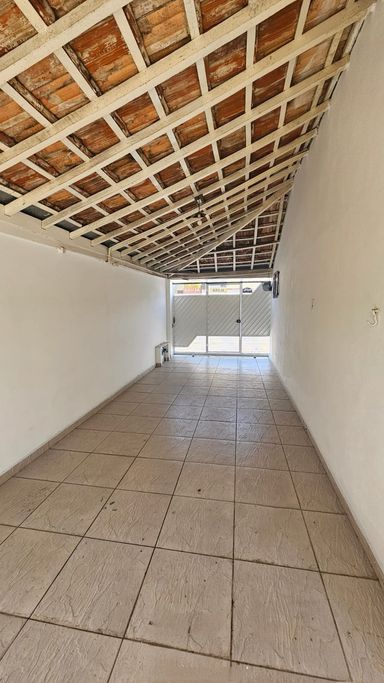 A casa possui 3 quartos 2 banheiros social, sala, cozinha, 2 vagas de garagem, portão eletrônico, nos fundos possuí mais um quarto e uma banheiro, amplo quintal.