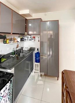 Sala de estar e jantar, cozinha, 03 quartos, 1 suíte, banheiro social, área de serviço e 02 vaga de garagem.