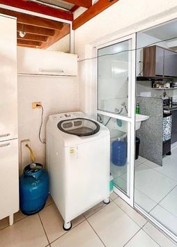 Sobrado aconchegante em condomínio, com quintal, área gourmet revestimento até o teto nos banheiros, box e espelho no banheiro.