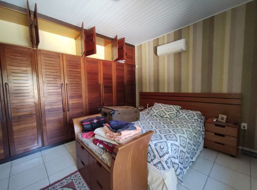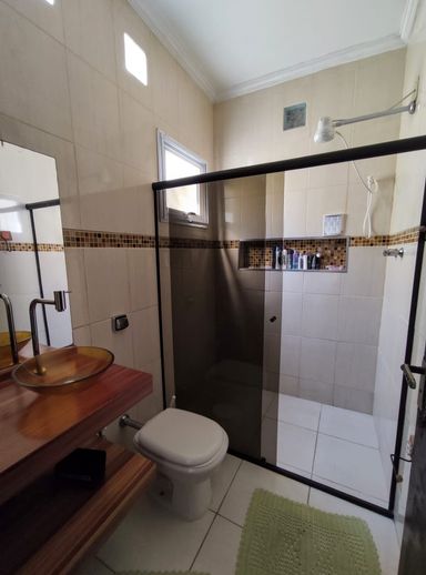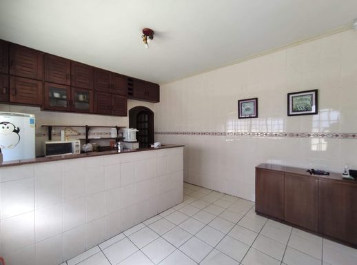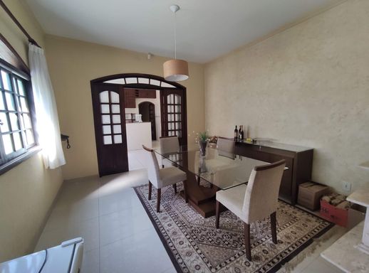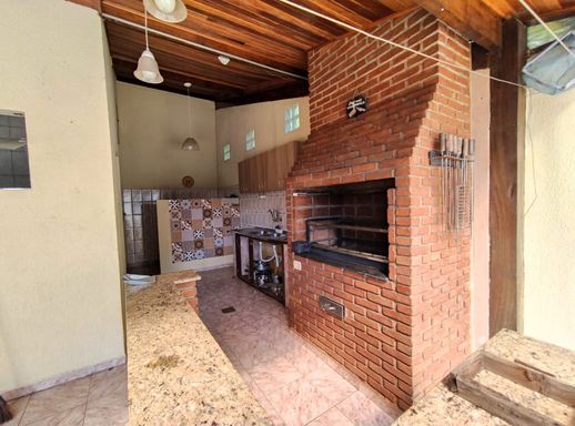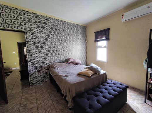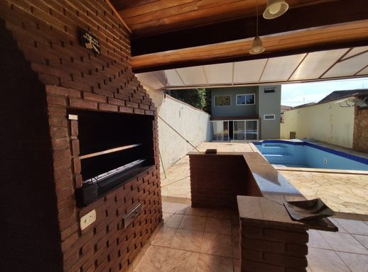 Sala de estar, sala de tv, cozinha com móveis planejados, 4 quartos sendo 2 suítes, área gourmet, quintal, edícula nos fundos, churrasqueira, piscina e 1 vaga de garagem coberta.