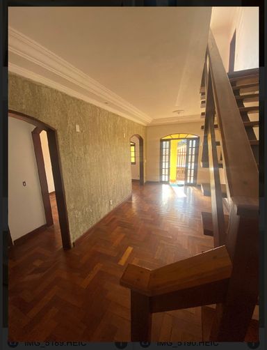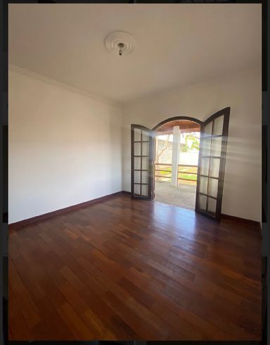Sala de estar e sala de jantar, banheiro social, 4 quartos sendo 1 suíte com closet, cozinha, área de serviço, varanda na frente e nos fundos (quartos) e amplo quintal de terra.