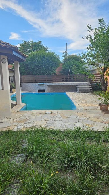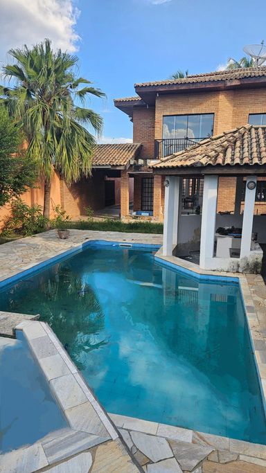 2 quartos suítes com hidromassagem, armários planejados na cozinha, jardim de inverno, área gourmet, piscina adulto e infantil, quintal espaçoso com árvores frutíferas.