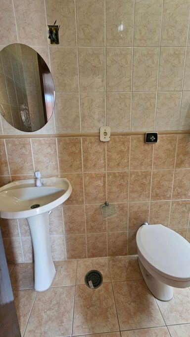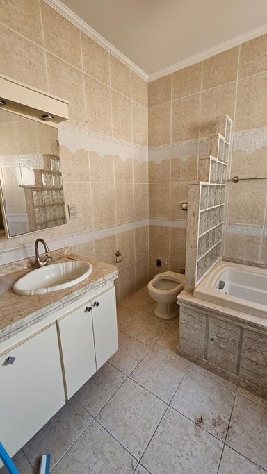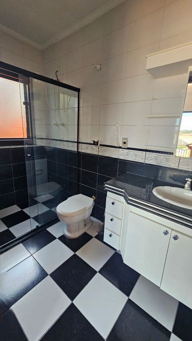 3 quartos, sendo 3 suítes, 2 banheiros social, sala de Tv, sala de jantar, cozinha, área de serviço, 3 vagas de garagem coberta.